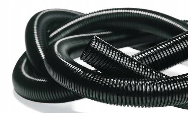 Rura instalacyjna, karbowana, giętka, nie rozprzestrzeniająca płomienia wykonana z PCV w kolorze czarnym, ze stalowym pilotem ułatwiającym przeciąganie przewodów.