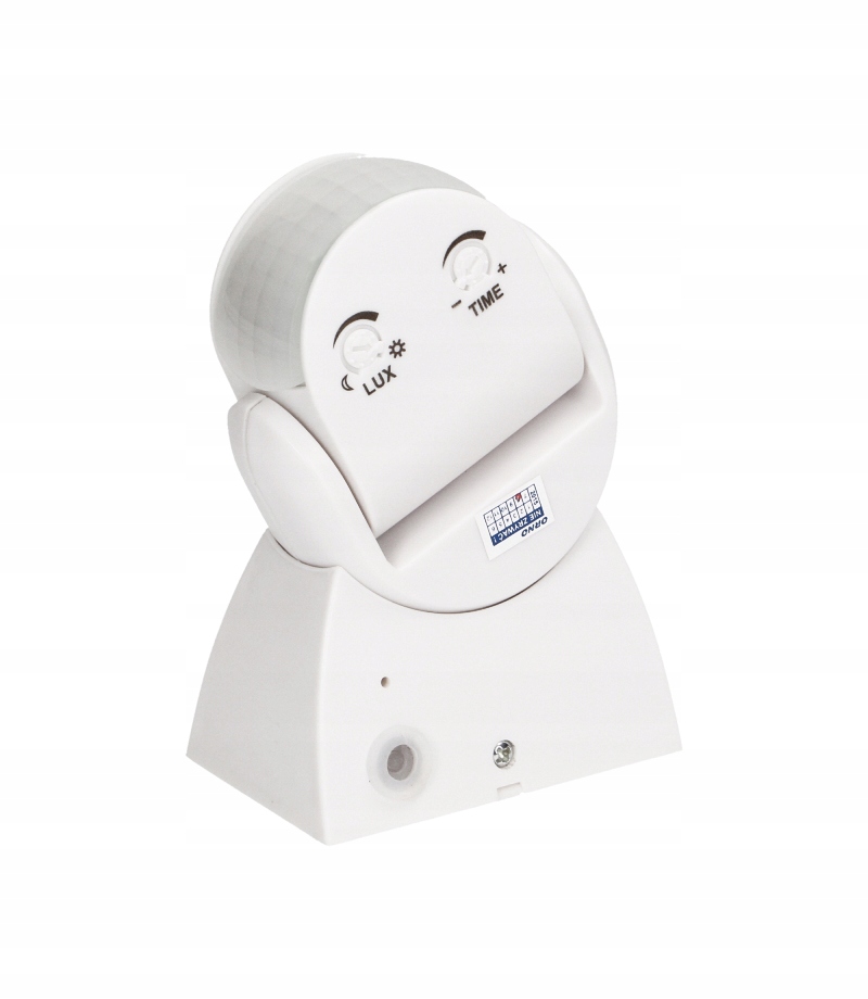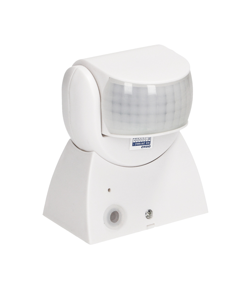 Ścienny czujnik ruchu PIR 180° zewnętrzny w kolorze białym firmy ORNO. Czujnik PIR znajdzie zastosowanie w każdym gospodarstwie domowym jak i firmie. Służy do automatycznego i czasowego załączania źródeł światła na przykład jako czujnik ruchu do LED. Do czujnika można podłączyć urządzenie o maksymalnej mocy 1200W. Kąt widzenia urządzenia to 180 stopni w zasięgu 12 metrów. Istnieje możliwość regulacji czasu świecenia w przedziale od 10 sekund do 15 minut oraz natężenia światła. Czujnik ruchu może być stosowany wewnątrz pomieszczeń jak i na zewnątrz. Dzięki stopniowi ochrony IP65 odporny jest na niekorzystne warunki atmosferyczne, w tym deszcz i śnieg.