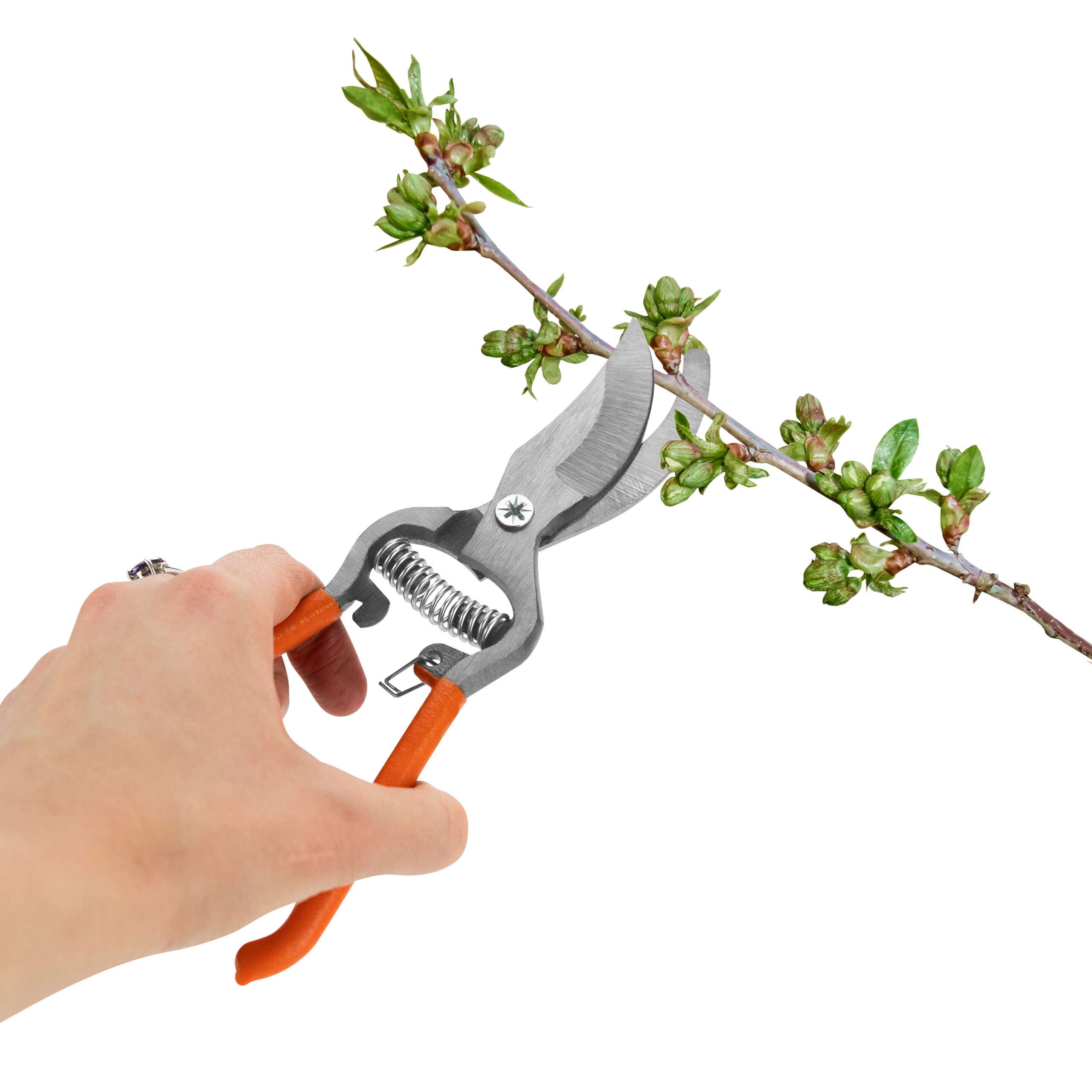 Dwa ostre ostrza zapewniają czyste i dokładne cięcie bez miażdżenia roślin. Kompaktowy rozmiar pozwala na obsługę jedną ręką, a blokada ostrzy podnosi poziom bezpieczeństwa podczas przechowywania. Antypoślizgowa rękojeść gwarantuje stabilny chwyt nawet podczas dłuższej pracy.