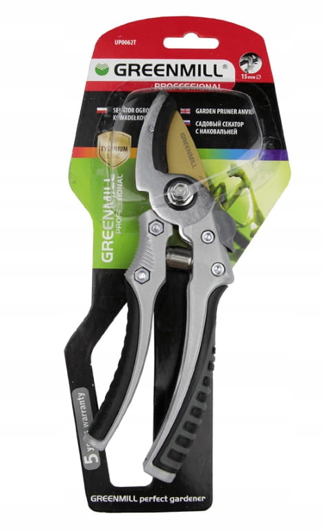 Profesjonalny sekator ogrodowy Greenmill UP0062T to idealne narzędzie do podcinania cieńszych gałęzi w sadach i ogrodach. Jego kowadełkowe ostrze wykonane z hartowanej japońskiej stali SK-5, pokrytej tytanem, zapewnia precyzyjne cięcie. Ergonomiczny uchwyt z nakładką antypoślizgową gwarantuje maksymalny komfort podczas pracy. Sekator jest lekki, poręczny i idealnie nadaje się do codziennego użytku. Maksymalna średnica cięcia wynosi 15 mm.