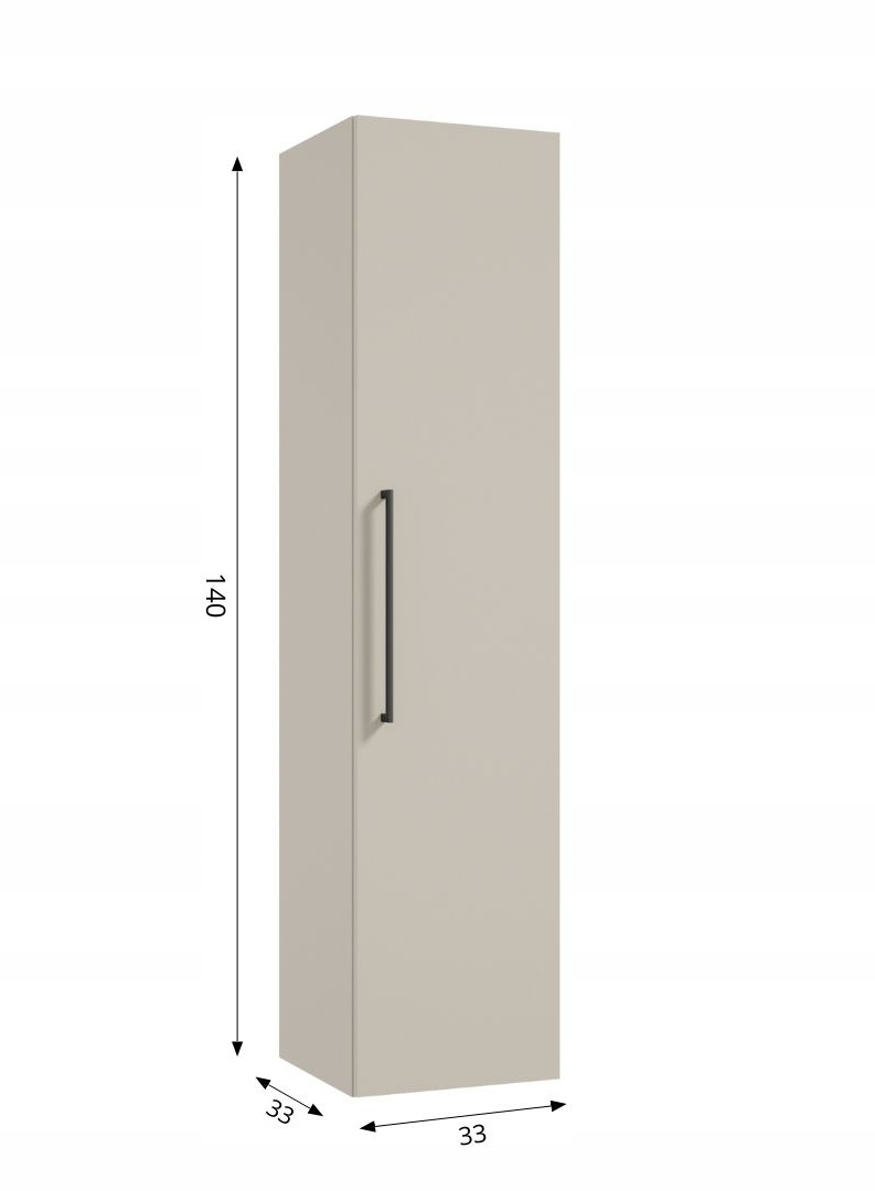 Słupek łazienkowy wysoka szafka wisząca kaszmir czarny uchwyt 140x33 cm Pinia