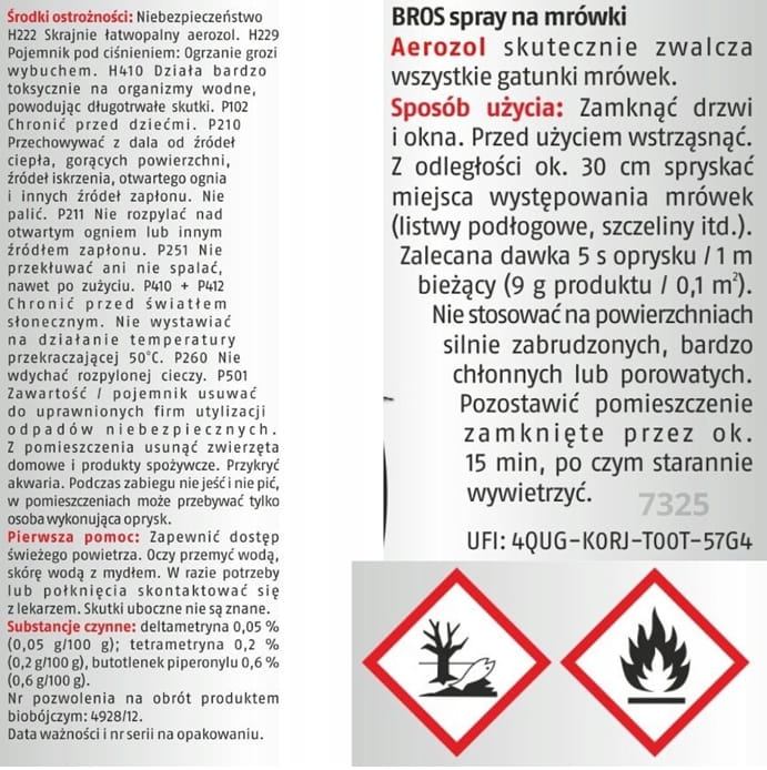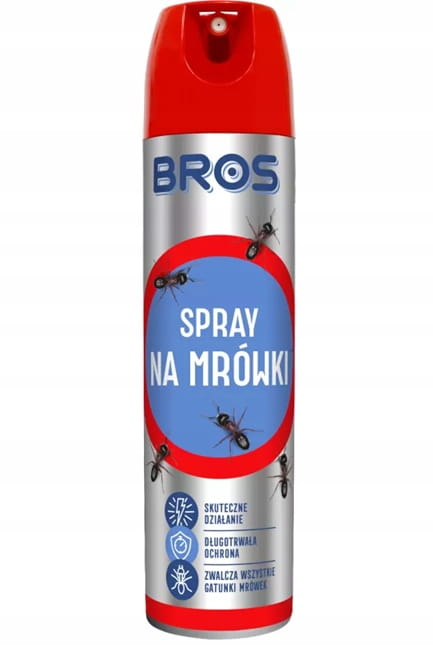 BROS Spray na Mrówki to skuteczny preparat przeznaczony do zwalczania wszystkich gatunków mrówek w pomieszczeniach oraz ich bezpośrednim sąsiedztwie, takich jak tarasy czy podjazdy.