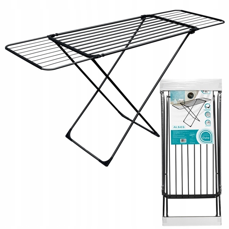 Suszarka balkonowa na pranie, wolnostojąca, czarna, 173x55x94cm