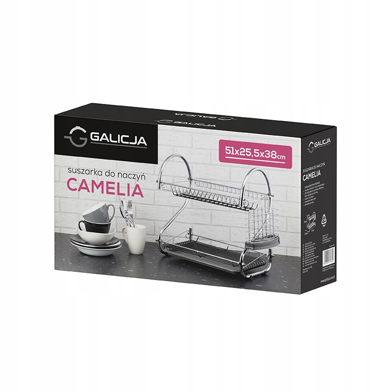 Suszarka do naczyń CAMELIA to praktyczny i funkcjonalny niezbędnik w każdej kuchni. Zestaw składa się z dwupoziomowej suszarki, plastikowej podstawki na wodę oraz ociekacza na sztućce, który można zawiesić po dowolnej stronie, dostosowując suszarkę do własnych potrzeb.