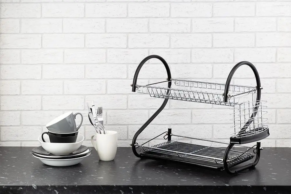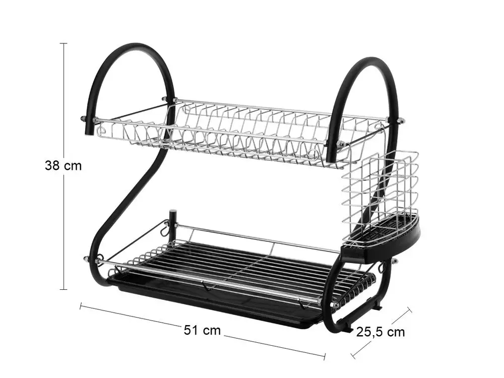 Suszarka do naczyń dwupoziomowa silikonowa czarna 51x38cm