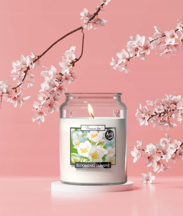 Świeca zapachowa w słoiku Kwitnący jaśmin 14x9,8cm do 100h palenia