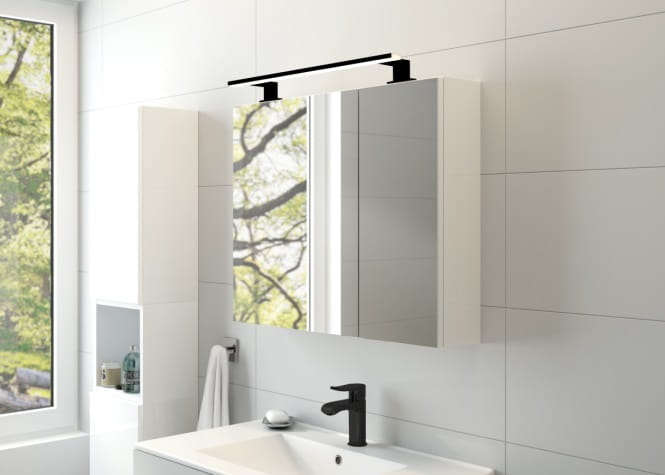 ✅ Lustrzany front 2w1 – pełni funkcję lustra i drzwiczek szafki, eliminując potrzebę montażu oddzielnego lustra.