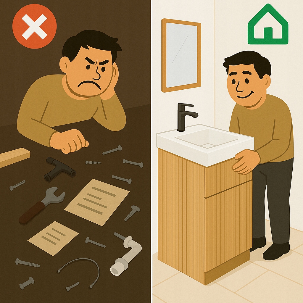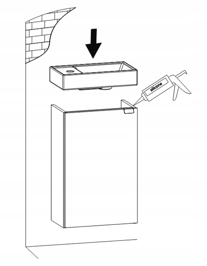 Ze względów bezpieczeństwa podczas transportu umywalka nie jest zamontowana na szafce, aby uniknąć uszkodzeń. Po rozpakowaniu wystarczy samodzielnie osadzić ją na szafce przy użyciu silikonu sanitarnego, co zapewni trwałe i szczelne połączenie.