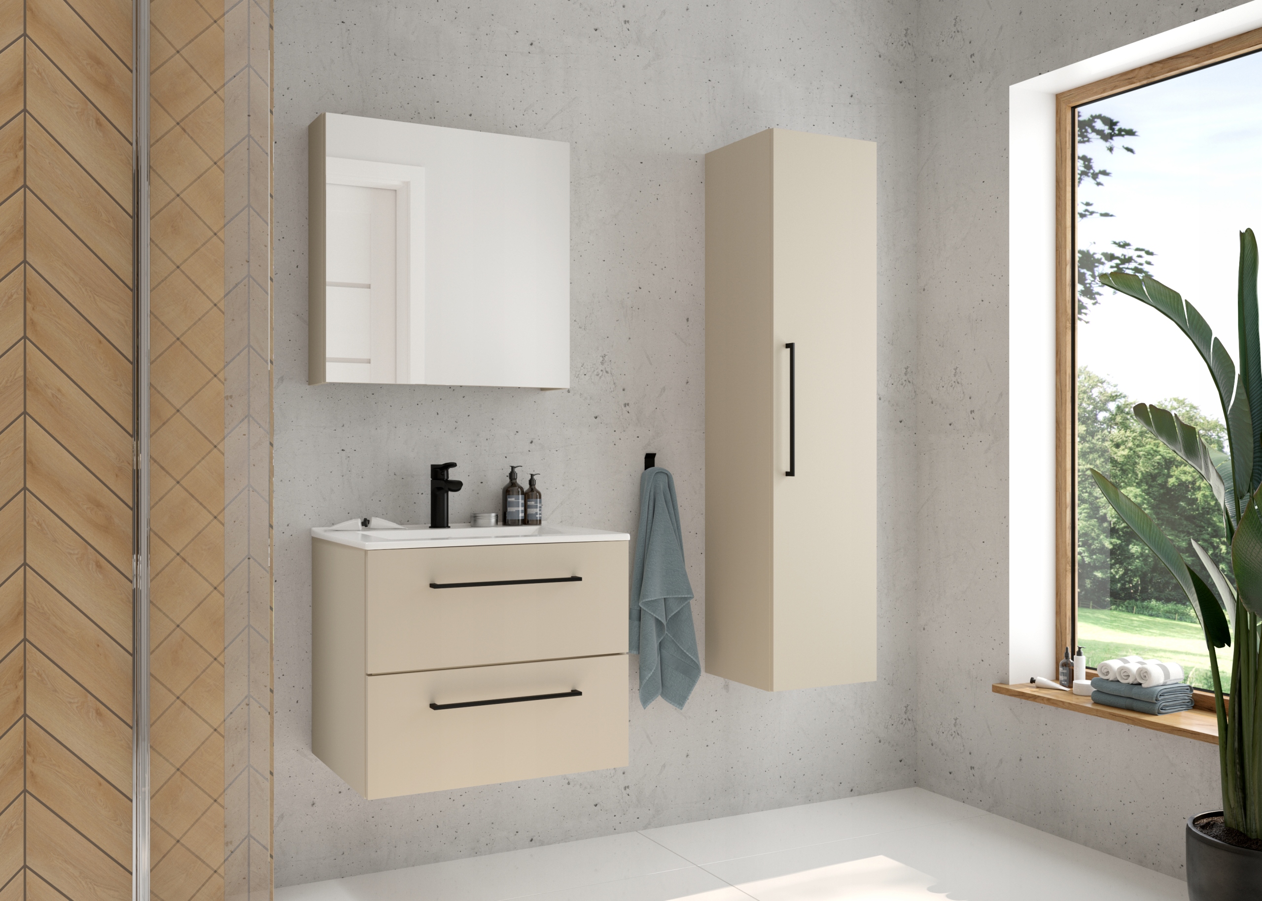 Szafka lustrzana Pinia 60 cm w kolorze kaszmir mat to funkcjonalne i eleganckie rozwiązanie do każdej łazienki. Uniwersalna szerokość sprawia, że doskonale sprawdzi się zarówno w mniejszych pomieszczeniach, jak i w przestronnych wnętrzach. Matowe wykończenie w modnym odcieniu kaszmir nadaje aranżacji nowoczesny i stonowany charakter.