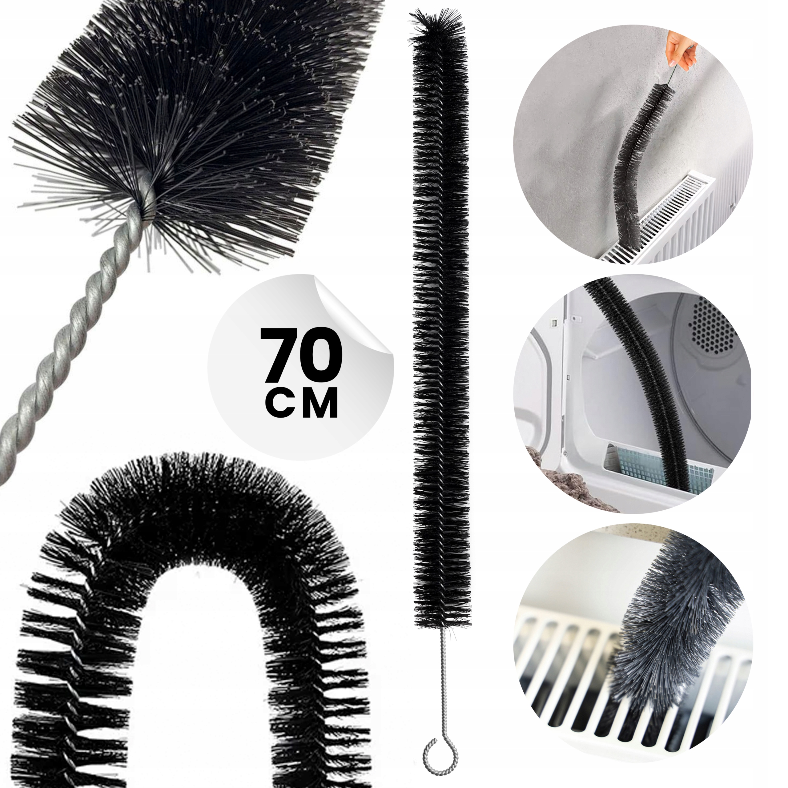 Długość całkowita 74 cm pozwala na dotarcie nawet do trudno dostępnych miejsc, a średnica szczotki 4–5 cm skutecznie czyści wnętrze rur bez ryzyka ich uszkodzenia. Wykonana z wysokiej jakości materiałów – nylonu, PP i drutu żelaznego – zapewnia trwałość oraz odporność na korozję.