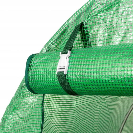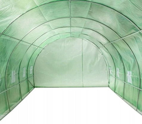 Wyposażona w aż 16 okien z moskitierą, zapewnia doskonałą cyrkulację powietrza oraz ochronę przed szkodnikami. Stabilna stalowa konstrukcja i zielono-biała folia PE to gwarancja trwałości oraz estetyki. Idealna zarówno do dużych ogrodów, jak i działek rekreacyjnych.