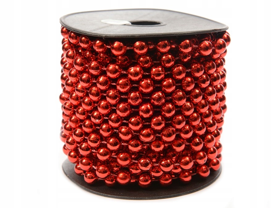 Sznur koralików łańcuch na choinkę 10 m czerwony