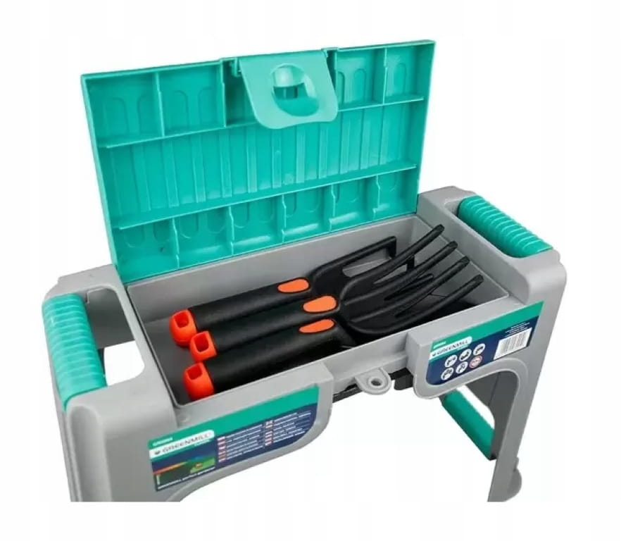 Taboret i klęcznik Greenmill to wszechstronny produkt wykonany z wytrzymałego tworzywa sztucznego, idealny do prac ogrodowych. Wyposażony w miękkie wykończenie zapewniające komfort użytkowania oraz praktyczny schowek na akcesoria ogrodowe. Maksymalne obciążenie statyczne w funkcji taboretu wynosi 80 kg.
