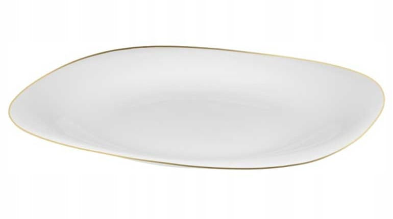 Talerz deserowy płaski kwadratowy 21,5 cm biały złoty