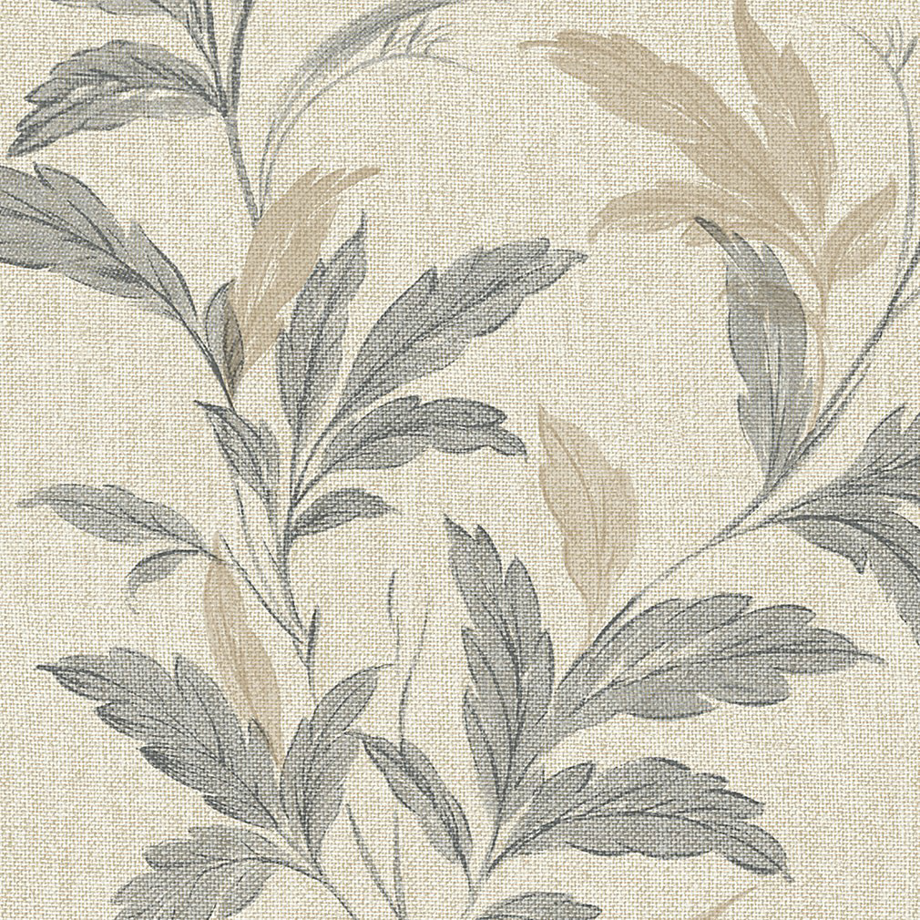 Tapeta winylowa na flizelinie rośliny liście szaro-beżowa 10m