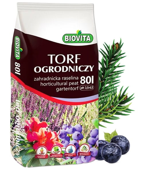 Kwaśny torf ogrodniczy 80L Biovita to odpowiednio wyselekcjonowany, naturalnego pochodzenia torf wysoki, o różnym stopniu rozkładu. W Znacznym stopniu poprawia jakość i strukturę gleby oraz warunki powietrzno-wodne. pH torfu ogrodniczego oscyluje w granicach 3,5-4,5.