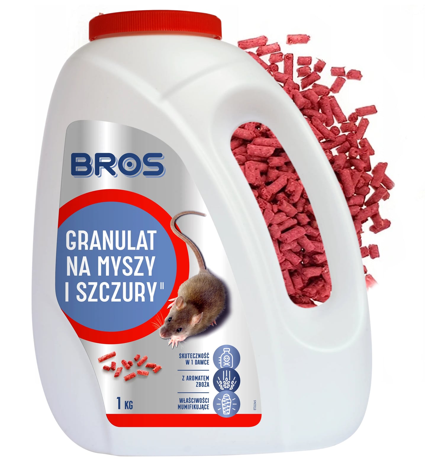 Granulat na myszy, szczury oraz nornice do stosowania w pomieszczeniach mieszkalnych, gospodarczych oraz terenach otwartych. Produkt skutecznie zwalcza uciążliwe gryzonie już w 1 dawce. Preparat zawiera składniki mumifikujące do spowolnienia rozkładu i ograniczenia nieprzyjemnego zapachu. Atrakcyjny wygląd dla gryzoni i wygodna forma produktu.
