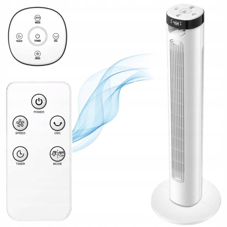 Wentylator kolumnowy Bise łączy elegancki, biały design z funkcjonalnością, oferując maksymalny komfort w codziennym użytkowaniu. Wyposażony w oscylację, pilot zdalnego sterowania oraz timer, wentylator zapewnia równomierne rozprowadzanie powietrza i wygodę obsługi.