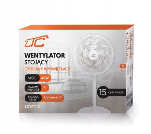Wentylator stojący LTC 12” to nowoczesne urządzenie, które zapewni Ci skuteczne chłodzenie w upalne dni. Dzięki mocy 45W i aż 15 łopatkom gwarantuje wydajną cyrkulację powietrza, a jego cicha praca pozwoli korzystać z niego także w nocy.