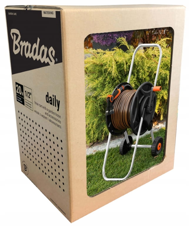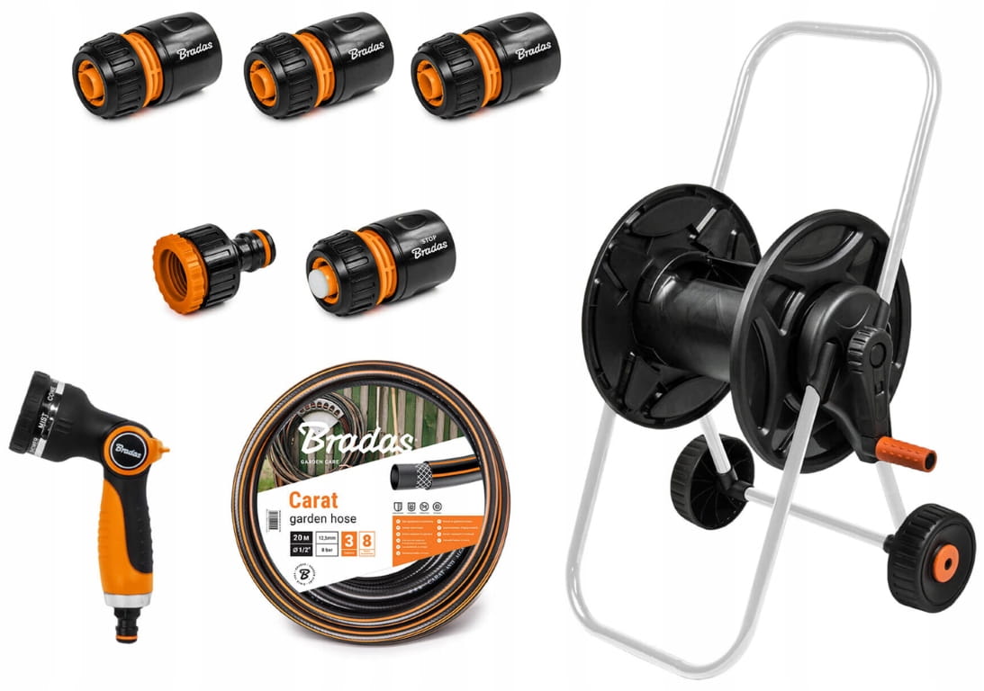 Wózek z wężem 1/2" 20m pistoletem i armaturą Kompletny zestaw