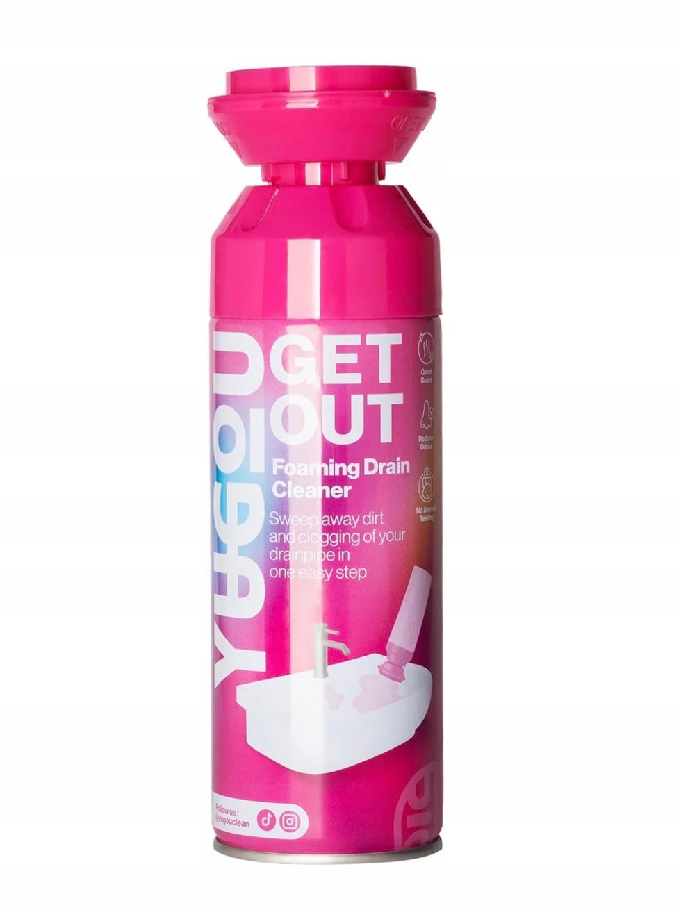 YUGOU Get Out Foam Drain Cleaner to skuteczna pianka do czyszczenia odpływów i zlewów, która szybko usuwa zatory oraz eliminuje nieprzyjemne zapachy. Dzięki aktywnej formule zwiększającej objętość, preparat dociera do trudno dostępnych miejsc, skutecznie rozpuszczając nagromadzone zanieczyszczenia.