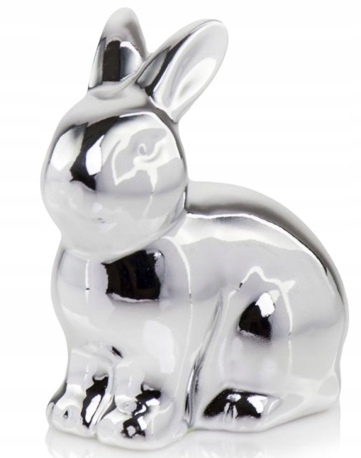 Zając ceramiczny wielkanocny srebrny 13 cm