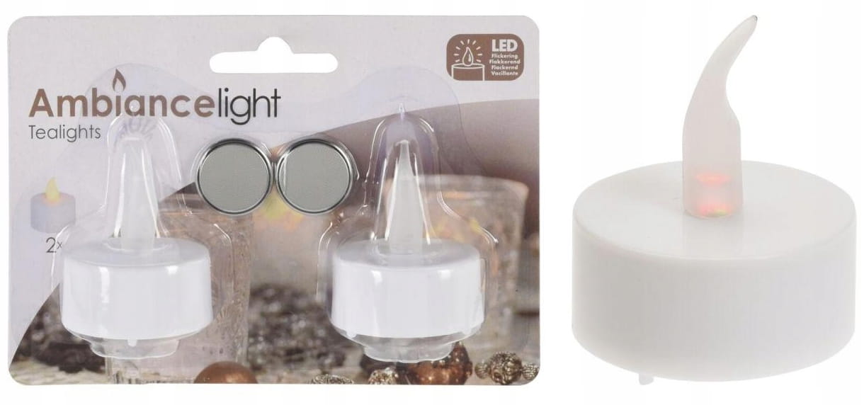 Szukasz ciepłego oświetlenia LED? Zestaw 2 świeczek TeaLight LED to idealne rozwiązanie! Wykonane z tworzywa sztucznego, są bezpieczne dla dzieci i zwierząt. Bezwonne, idealne dla alergików, nie wydzielają zapachów. Zasilane bateriami CR2032 (w zestawie), działają długo. Lampka LED imituje migający płomień, tworząc przyjemny efekt. Posiadają łatwy w użyciu włącznik on/off. Stwórz wyjątkowy klimat w domu z bezpiecznymi i estetycznymi świeczkami LED!