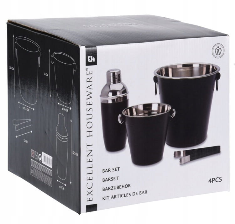 ☑️ Zestaw barmański idealnie sprawdzi się do przyrządzania ulubionych koktajli i drinków. W zestawie znajduje się wiaderko małe na lód, wiaderko duże na butelkę, shaker oraz szczypce do lodu. Znakomicie się sprawdzi się jako prezent dla smakoszy oryginalnych napojów. Będzie także świetną atrakcją wieczornego spotkania.