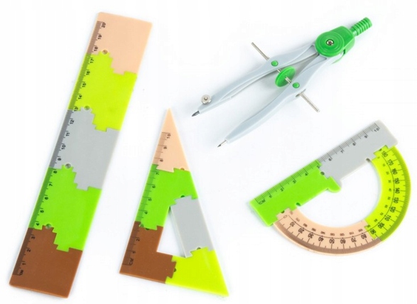 Zestaw geometryczny to praktyczny i funkcjonalny komplet do nauki geometrii, idealny dla uczniów szkół podstawowych i średnich. Kolorowe elementy zestawu w odcieniach brązu, szarości i zieleni można łączyć ze sobą jak puzzle, co ułatwia ich przechowywanie i zwiększa atrakcyjność użytkowania.
