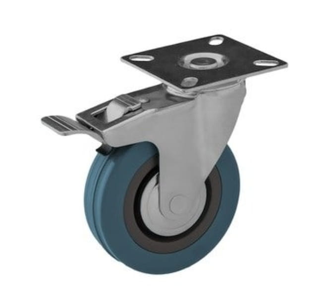Zestaw kołowy to solidne rozwiązanie łączące mocowanie na tzw. płytkę wykonane z tłoczonej blachy stalowej oraz koło z piastą polipropylenową i gumową oponką. Głowica skrętna jest podwójnie ułożyskowana, a wszystkie elementy metalowe pokryte są antykorozyjną powłoką. Wersja z łożyskiem ślizgowym zapewnia precyzyjne działanie i trwałość.