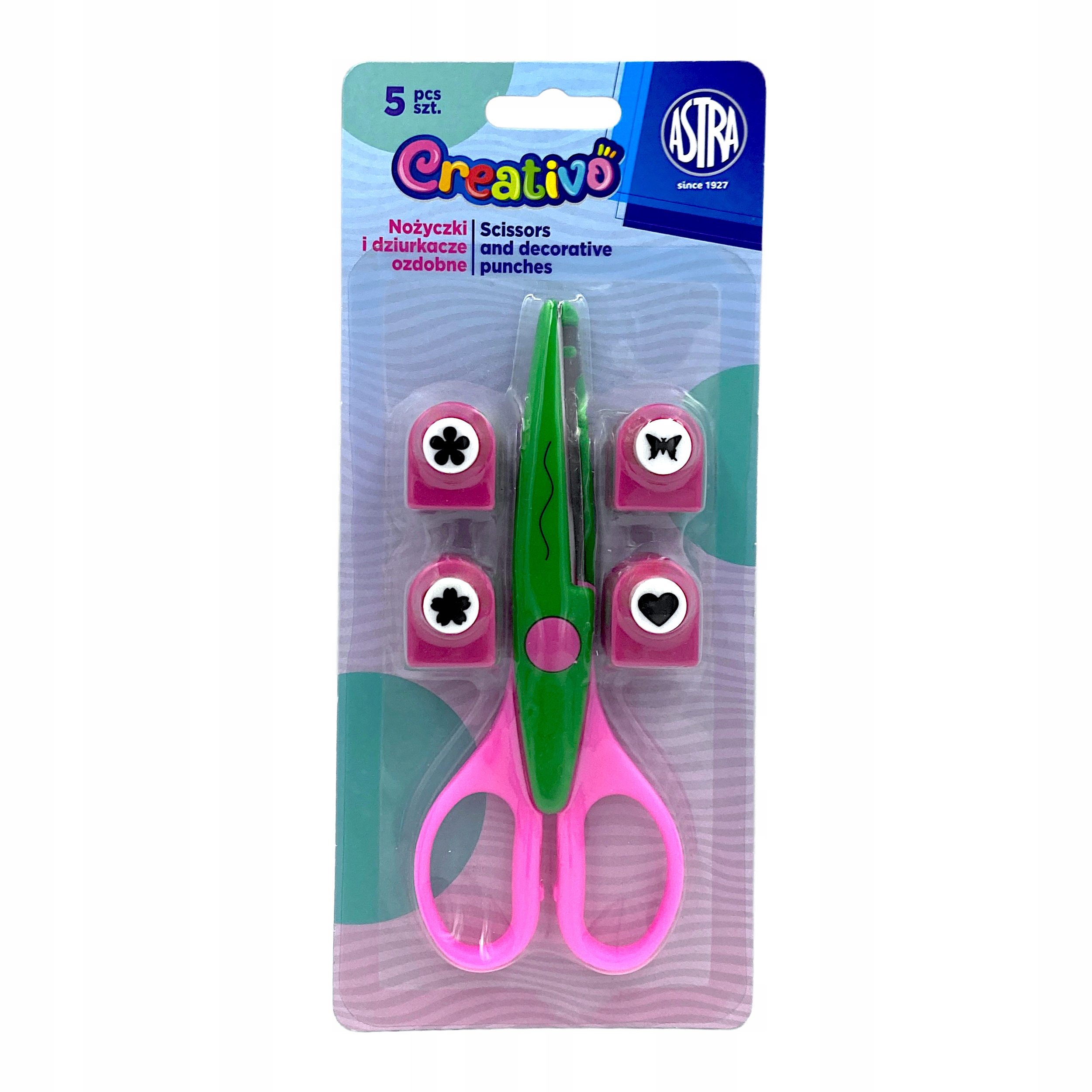 ✅ Zestaw zawiera: Nożyczki ozdobne + 4 dziurkacze ozdobne