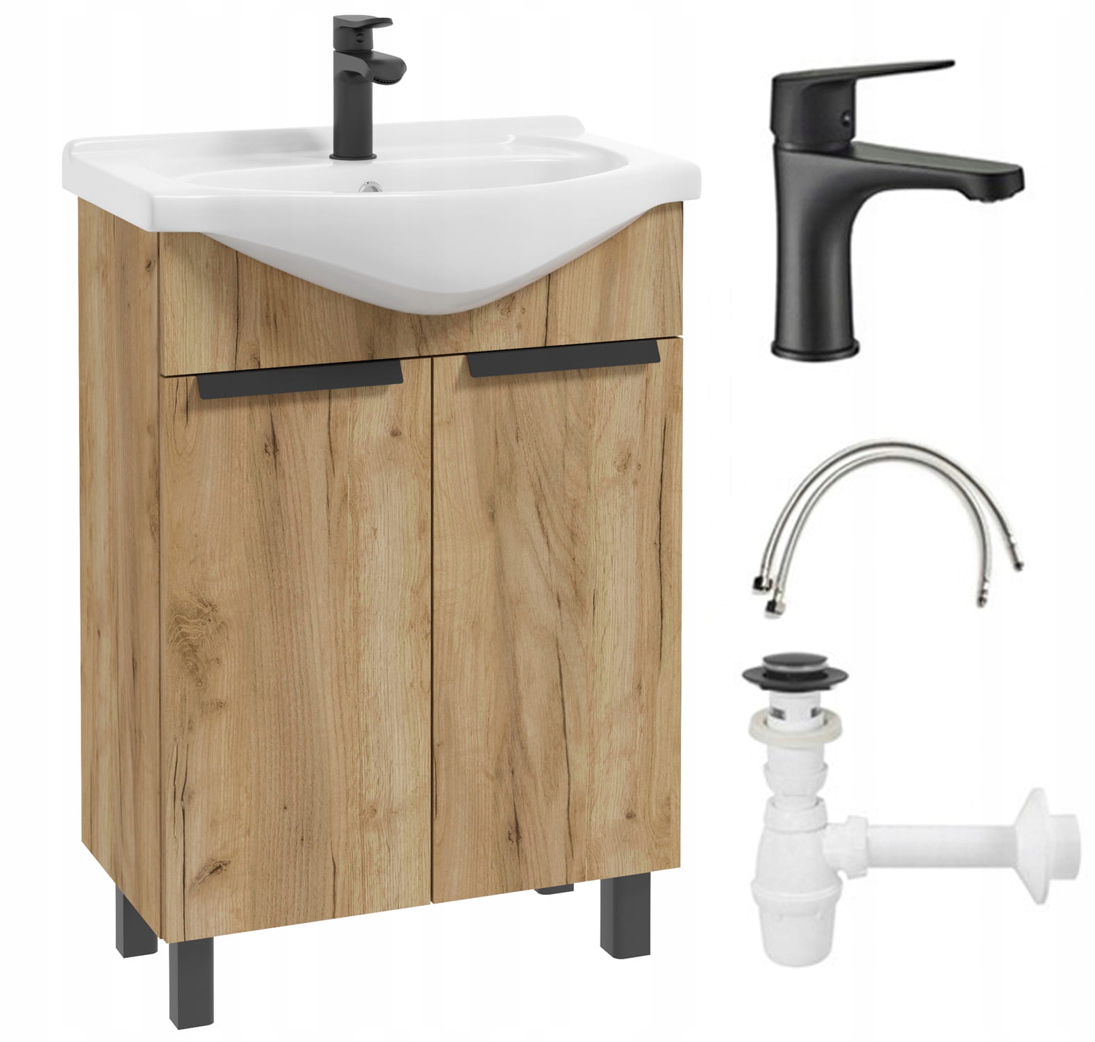 Zestaw szafka łazienkowa z umywalka baterią i syfonem stojąca 60 cm