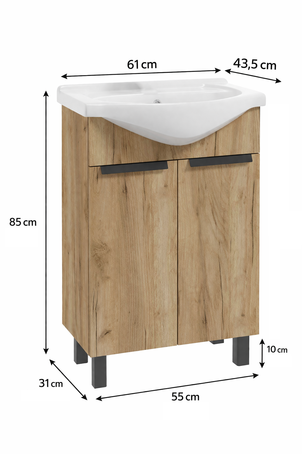 Zestaw szafka łazienkowa 85x60cm dąb craft z umywalką i baterią czarną Lily